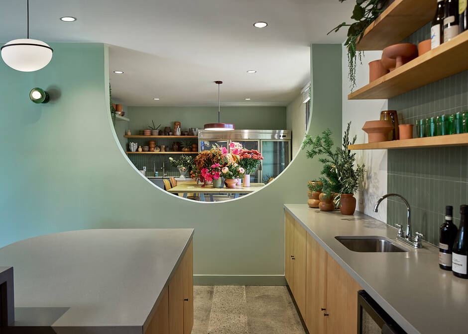 Our clients had different passions, one for flowers the other for fine wines. These individual interests were combined in Purple Vine & Bloom: a flower shop, and wine store with a small tasting bar. Our architectural design makes exuberant use of simple materials in a normal strip mall storefront in Pasadena and gives our clients a perfect backdrop to display their respective passions. #knowhow2303